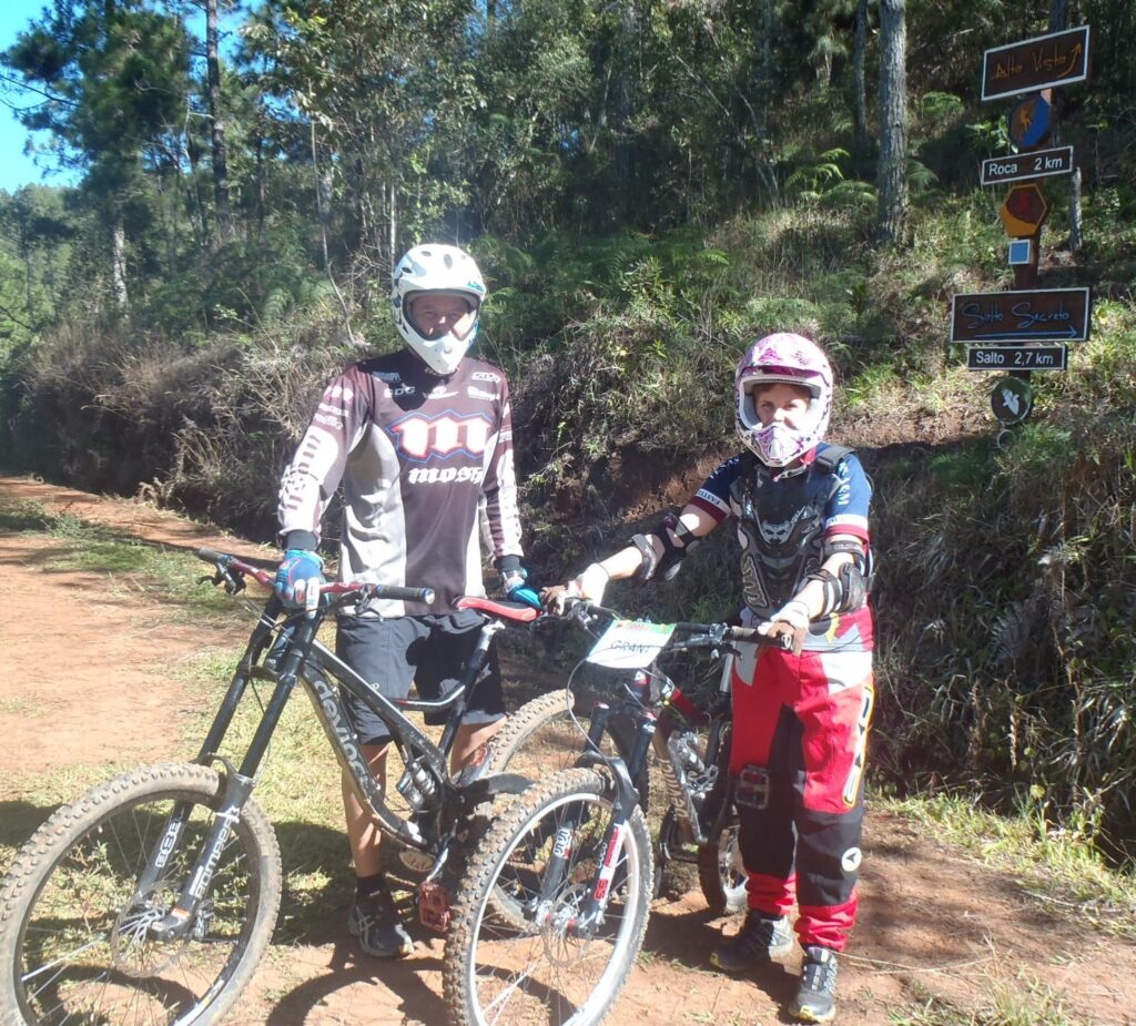 Keren and I built some of the original mountain bike trails at Spirit Mountain back in 2013. She’s swung a pickaxe on every trail we have today — Puerco Loco, Spirit Flow (our first), Chivo Picante, Dos Mundos, and now the legendary Los Guerreros. It’s a family legacy, written in dirt and sweat and the occasional crash.